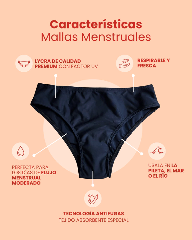 Descubrí nuestras mallas menstruales, diseñadas para que disfrutes de la playa o la pileta sin interrupciones, incluso en tus días de período. Su diseño se adapta perfectamente al cuerpo, brindando comodidad, libertad y confianza en cada movimiento.